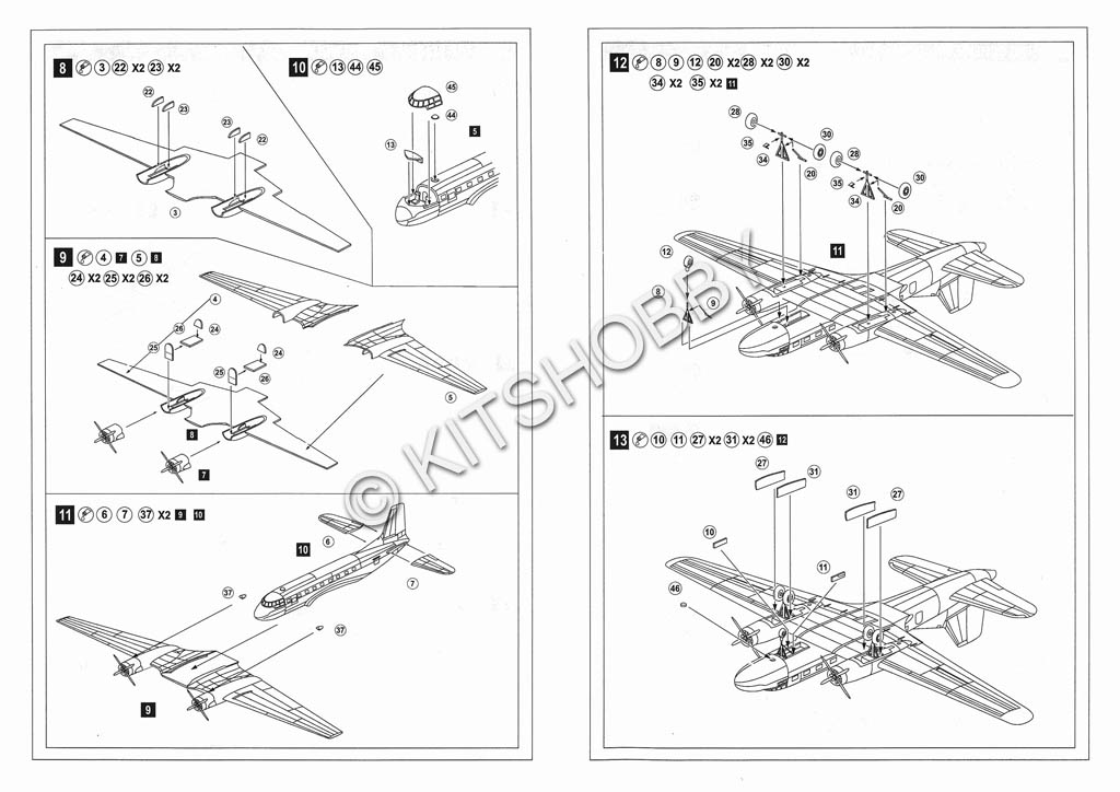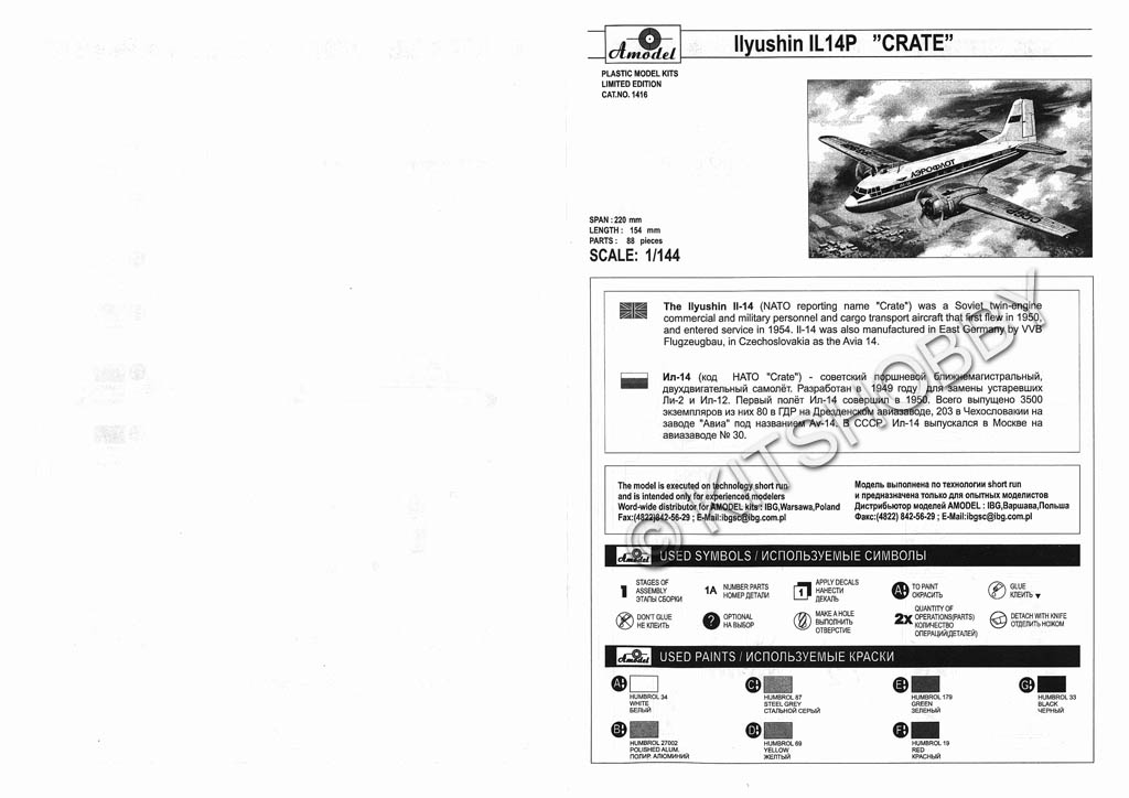 Amodel 1/144 IL-14P 運輸機, 凹線.