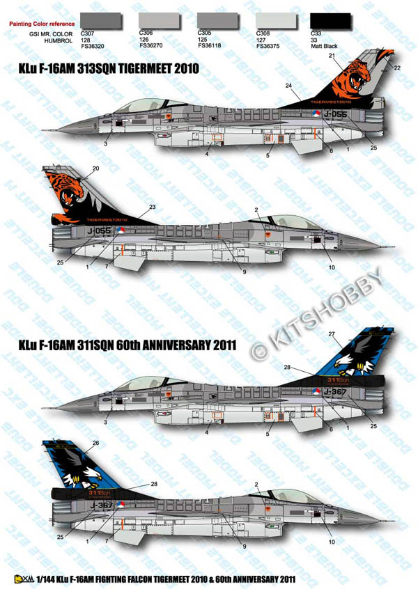 1/144 荷蘭皇家空軍F-16AM 313中隊2010老虎會/311中隊60周年紀念塗裝 水貼