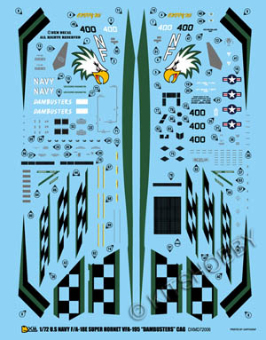 Decals provide USN F/A-18E VFA-195 Dambusters CAG 2011 ChippyHo markings.