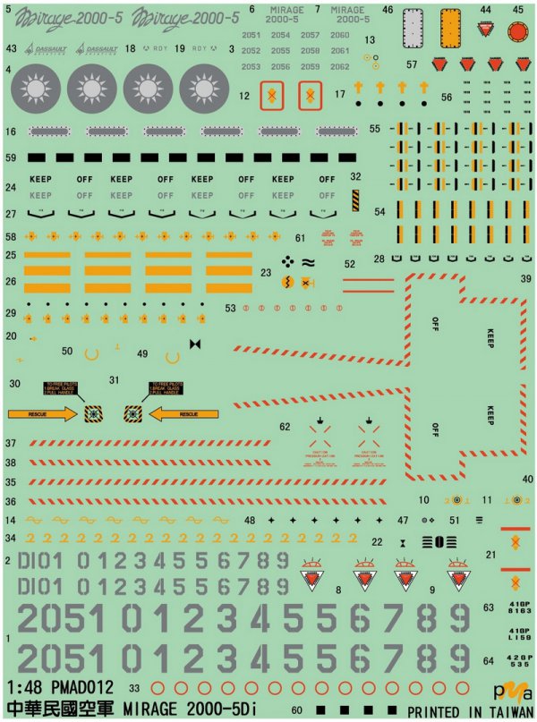 台灣製造. 水貼提中華民國空軍 幻影2000-5Di (雙座型)低視度迷彩塗裝