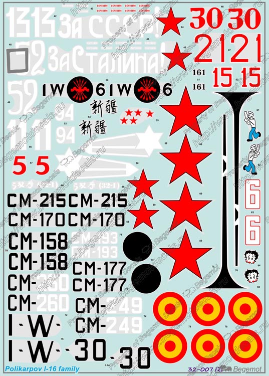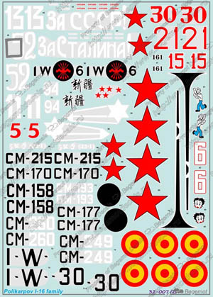 這款水貼可以選擇製作50款不同塗裝的I-16系列.