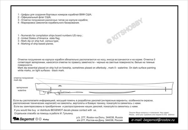 水貼包括二次大戰美國海軍的海軍軍旗, 艦載飛機機徽, 食水線.