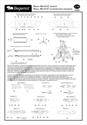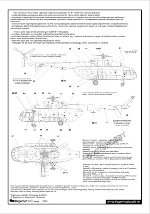這款水貼包括一架完整的Mi-8/17警告標語(機身/機艙內部/旋翼), 此外還包括蘇聯/俄羅斯直昇機外掛裝備的警告標語(UB-16/57, UB-32/57, B-8V20A, UPK-23-250, GUV-1, GUV-2, KMG-U, KMGU-2, PTB-450)