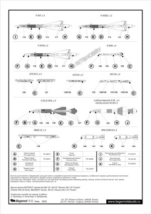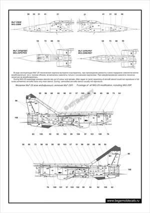 這款水貼包括了不同型號的MiG-25警告標語(MiG-25P, Mig-25PD, MiG-25PDS, MiG-25PU, MiG-25RB, MiG-25RBF, MiG-25RU, MiG-25BM), 此外還包括多種外掛裝備的警告標語 (空對空導彈/非制導炸彈)