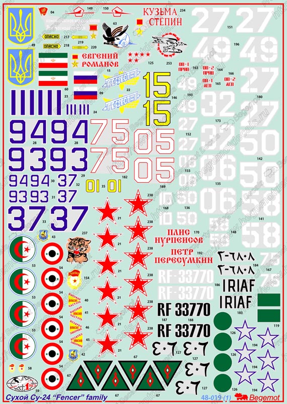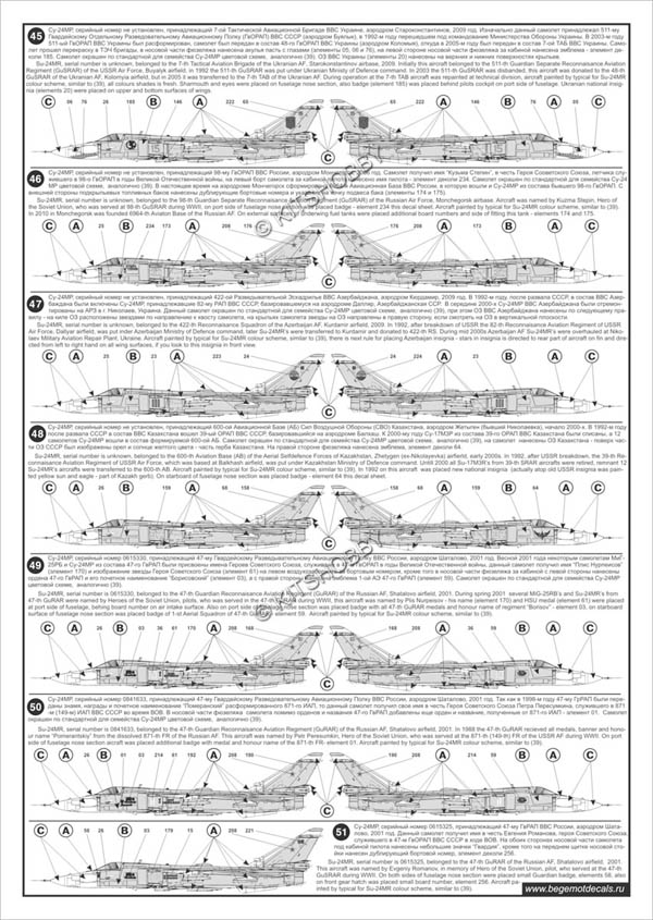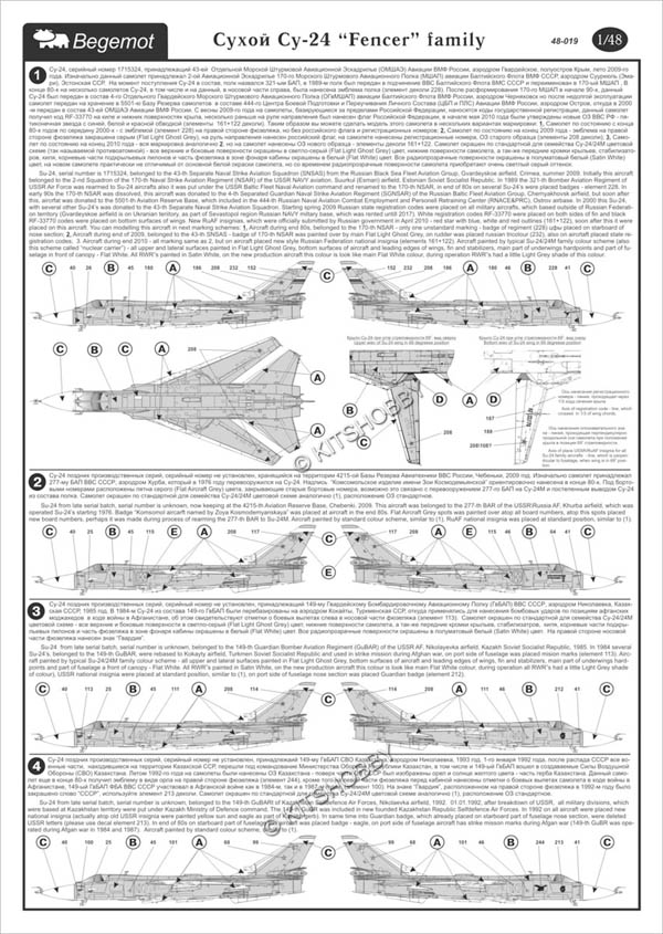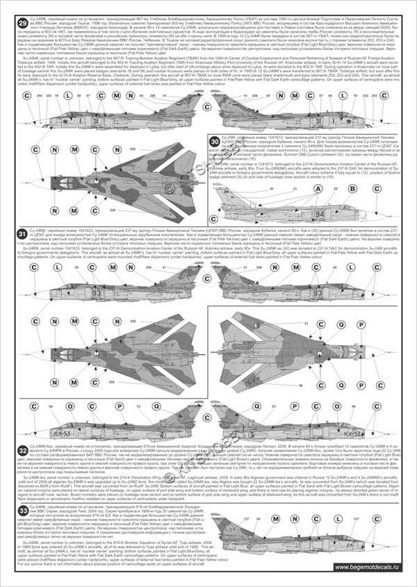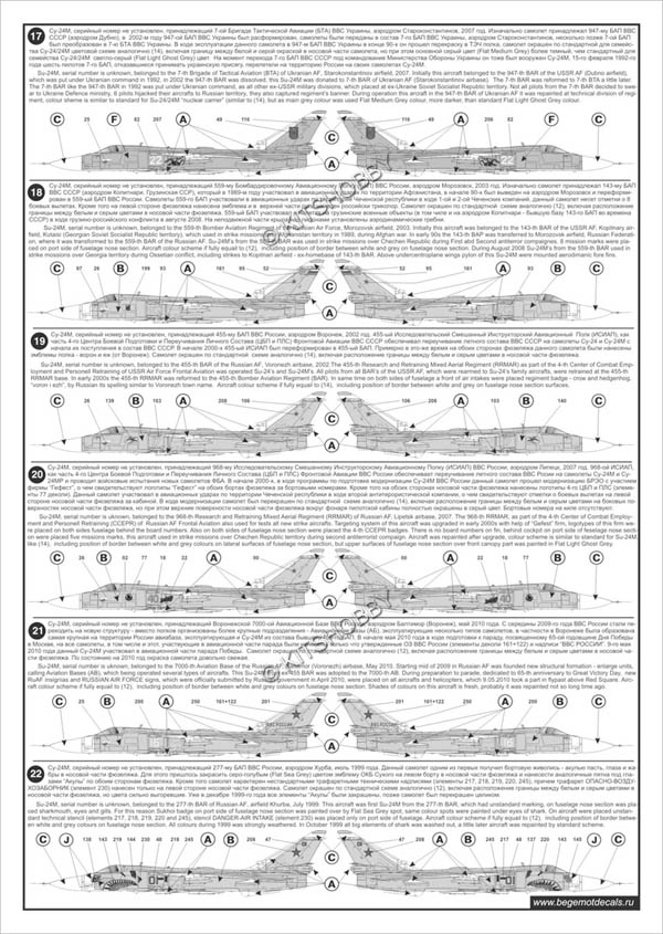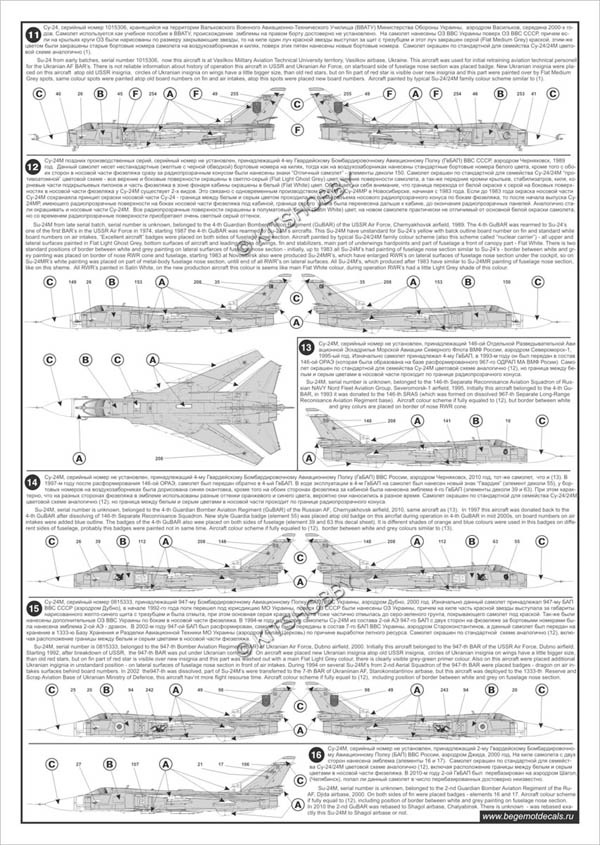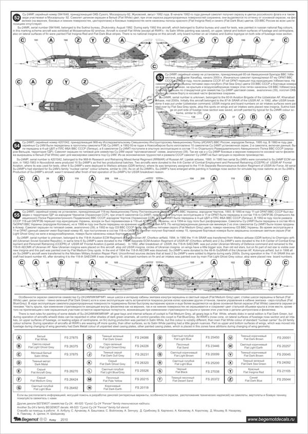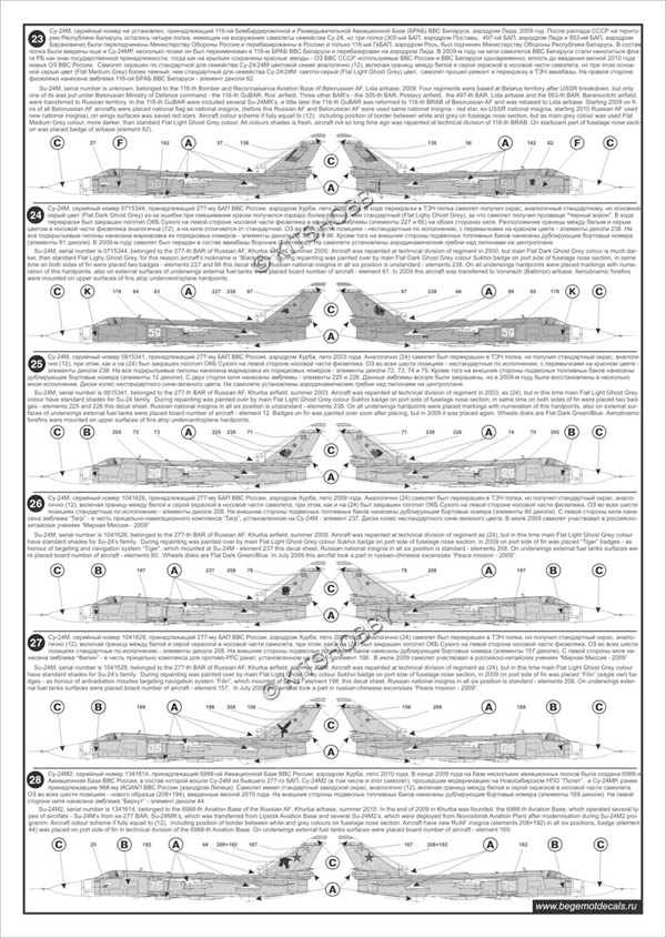 這款水貼可以選擇製作55款不同塗裝的Su-24 ,機型包括Su-24M, Su-24MR, Su-24MK, Su-24MRK 及 Su-24MP.