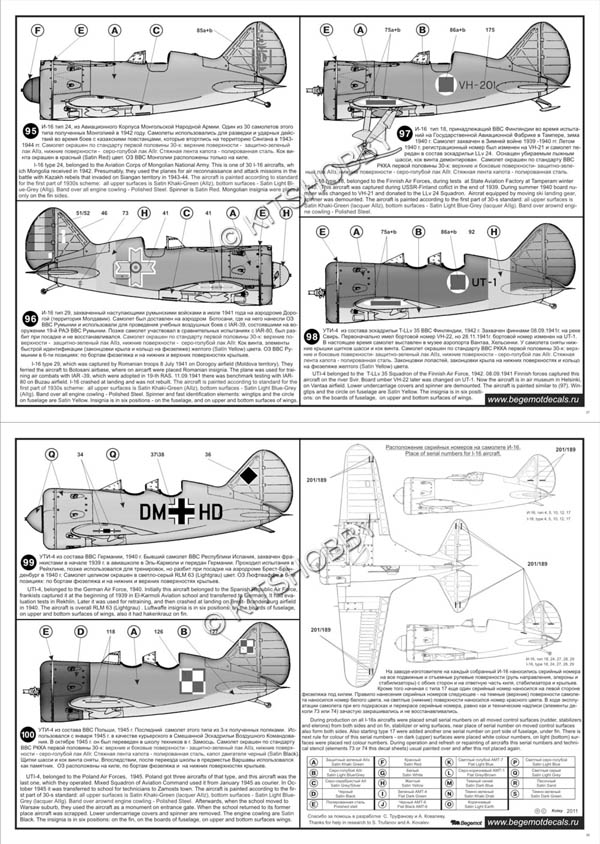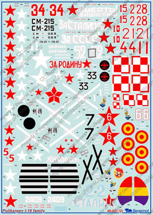 這款水貼可以選擇製作100款不同塗裝的I-16.
