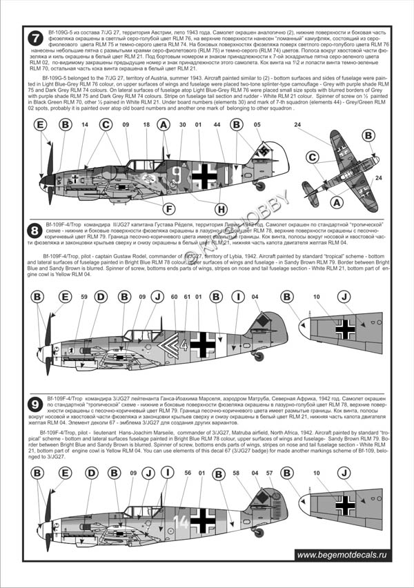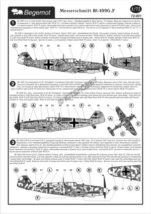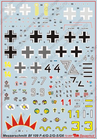 這款水貼包括了9款不同Bf-109G/F的塗裝, 並還包括1架Bf-109的警告標語.