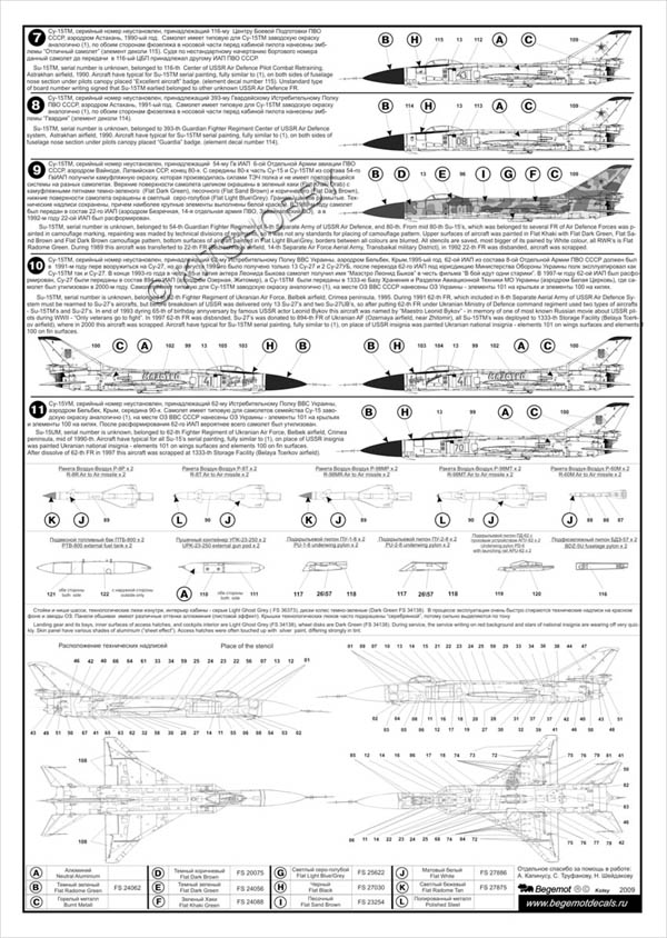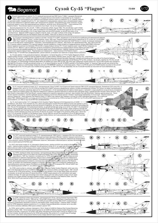 這款水貼可以選擇製作11款不同塗裝的Su-15 ,機型包括Su-15, Su-15T, Su-15UT, Su-15TM 及 Su-15UM.