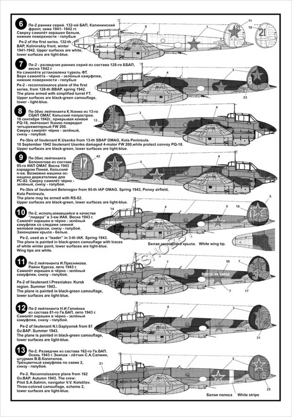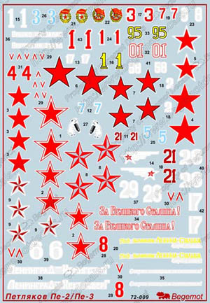 這款水貼可以選擇製作22款不同塗裝的蘇聯Pe-2 及 Pe-3.