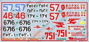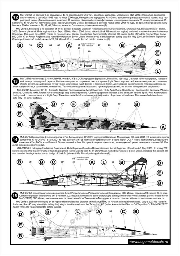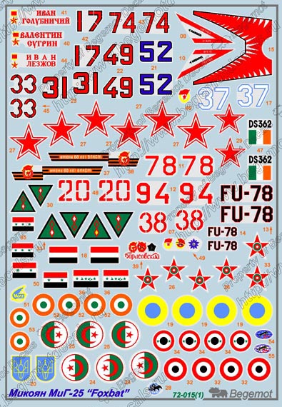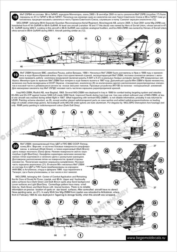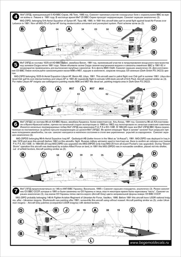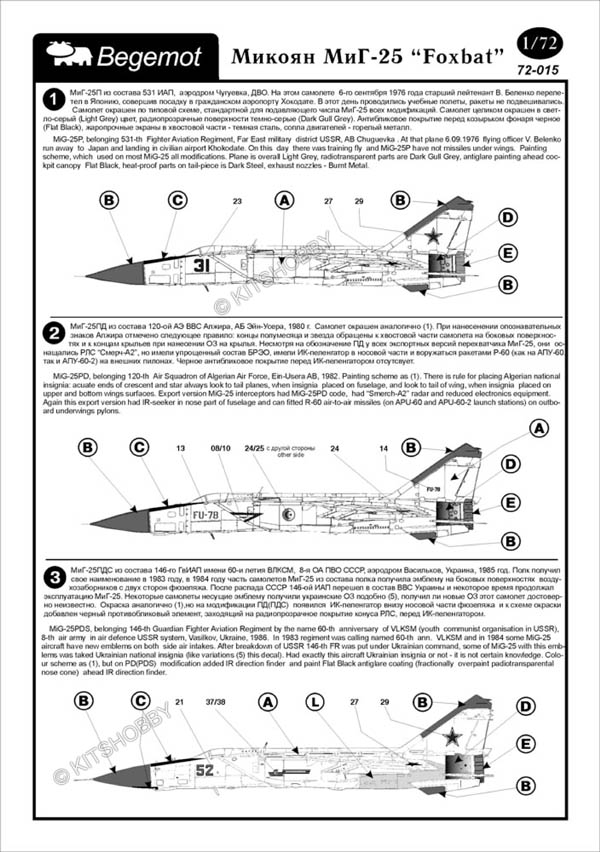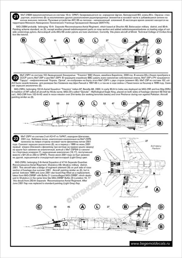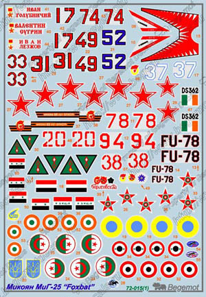 這款水貼可以選擇製作23款不同塗裝的MiG-25 ,機型包括MiG-25P, Mig-25PD, MiG-25PDS, MiG-25PU, MiG-25RB, MiG-25RBSH, MiG-25RBT, MiG-25RBF, MiG-25RU 及 MiG-25BM