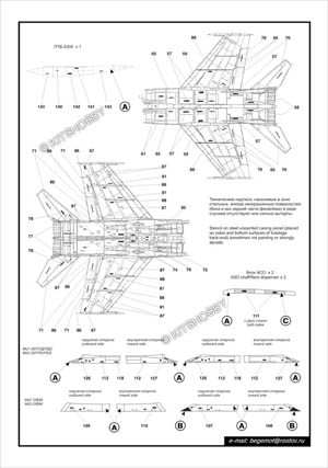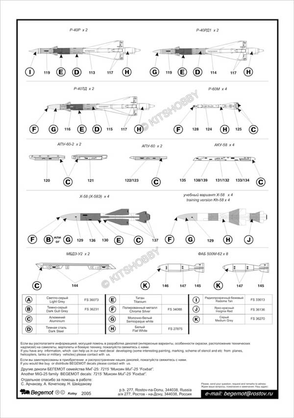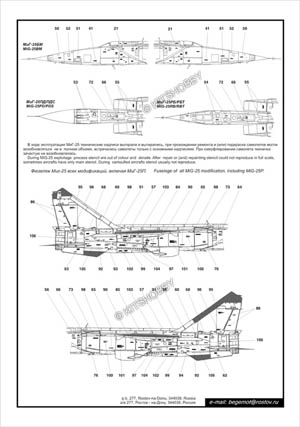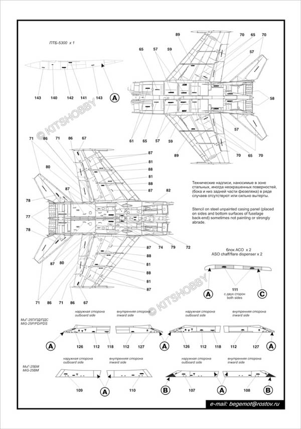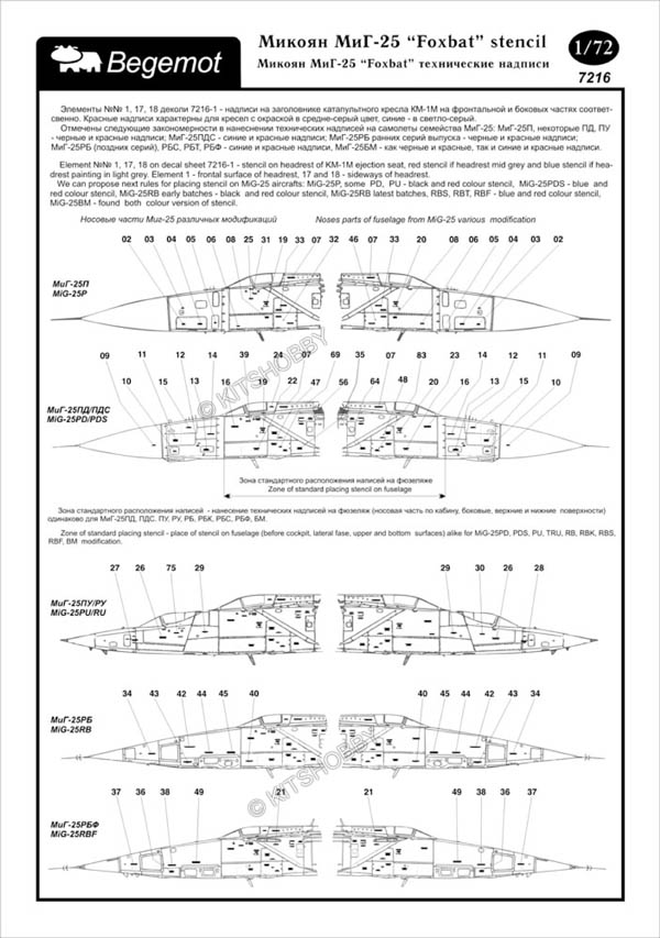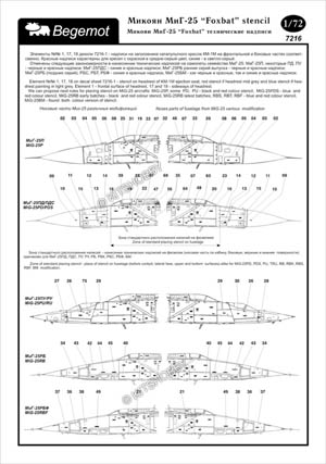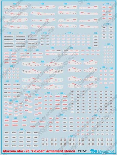 這款水貼包括了不同型號的MiG-25警告標語(MiG-25P, Mig-25PD, MiG-25PDS, MiG-25PU, MiG-25RB, MiG-25RBF, MiG-25RU, MiG-25BM), 此外還包括多種外掛裝備的警告標語 (空對空導彈/非制導炸彈)
