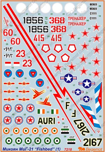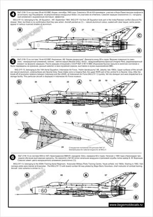 這款水貼可以選擇製作12款不同塗裝的MiG-21, 機型包括MiG-21F-13, MiG-21PF 及 MiG-21PFM.