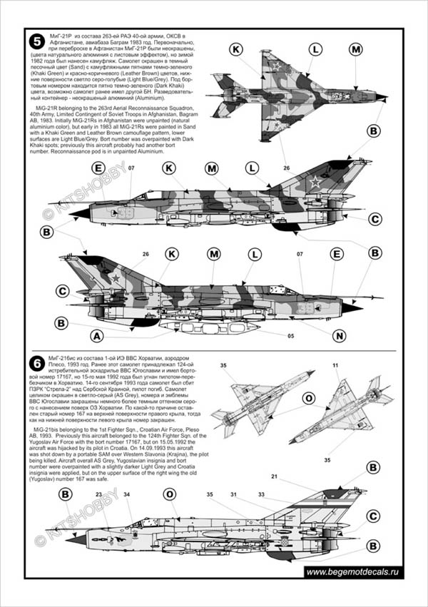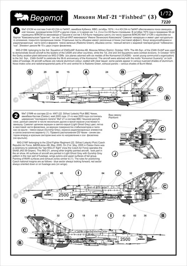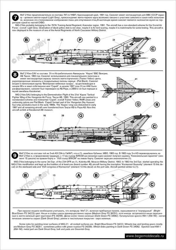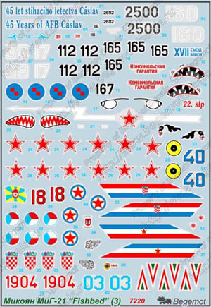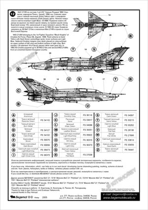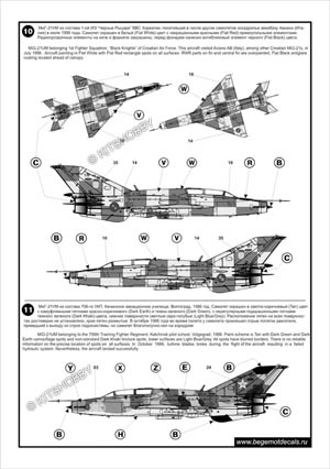 這款水貼可以選擇製作12款不同塗裝的MiG-21 ,機型包括MiG-21SM(MF), MiG-21R, MG-21bis 及 MiG-21UM.