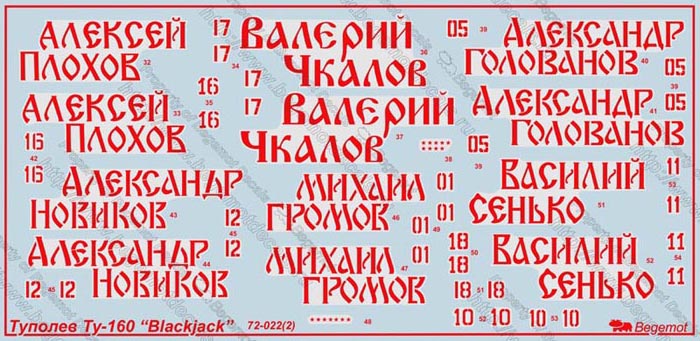 這款水貼可以選擇製作15款不同的Tu-160 (前蘇聯/俄羅斯/烏克蘭).