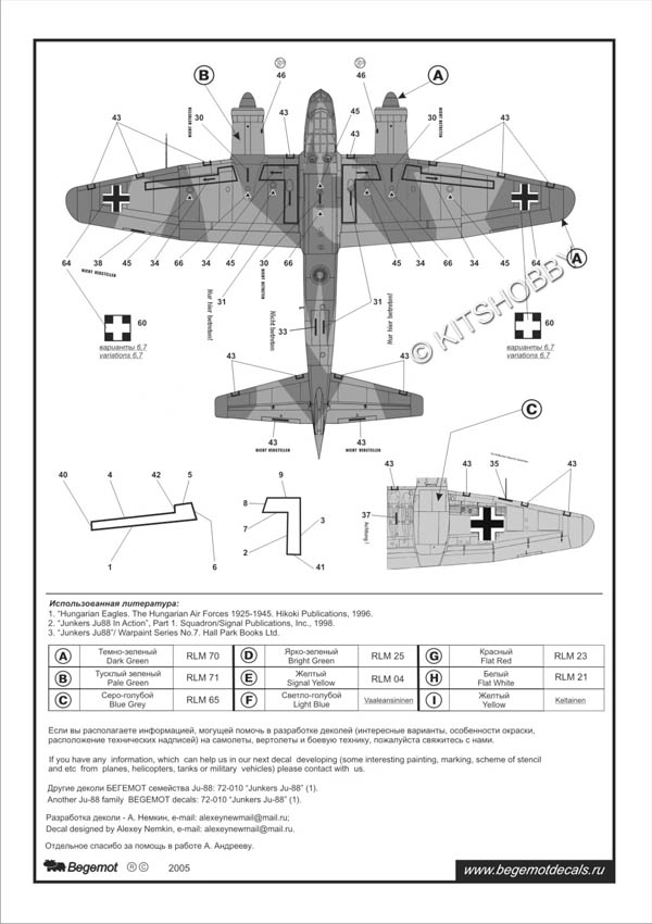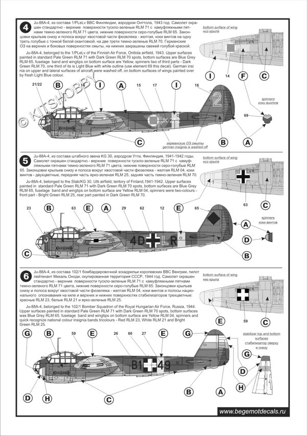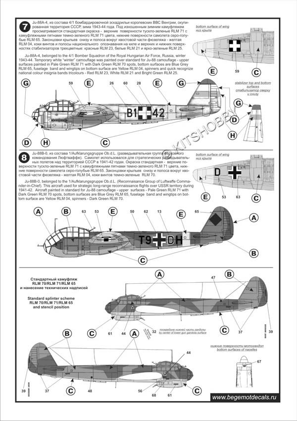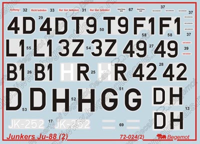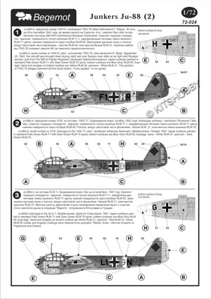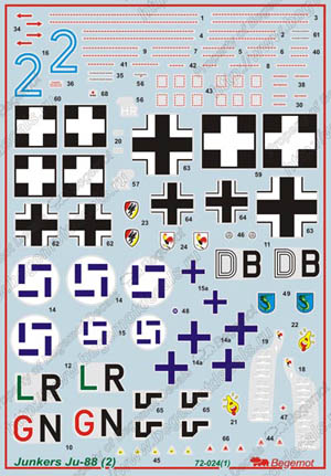 這款水貼可以選擇製作8款不同塗裝的Ju-88 ,機型包括Ju-88A-4 及 Ju-88B-0.