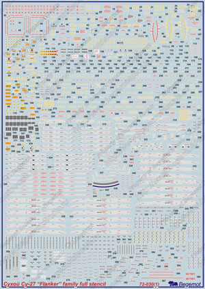 這款水貼提供一架Su-27(可選擇Su-27, Su-27UB, Su-33)的警告標語. 此外還包括40種外掛裝備的警告標語 (空對空/空對地導彈, 制導/非制導炸彈)