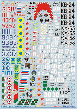 這款水貼可以選擇製作55款不同塗裝的Su-24 ,機型包括Su-24M, Su-24MR, Su-24MK, Su-24MRK 及 Su-24MP.