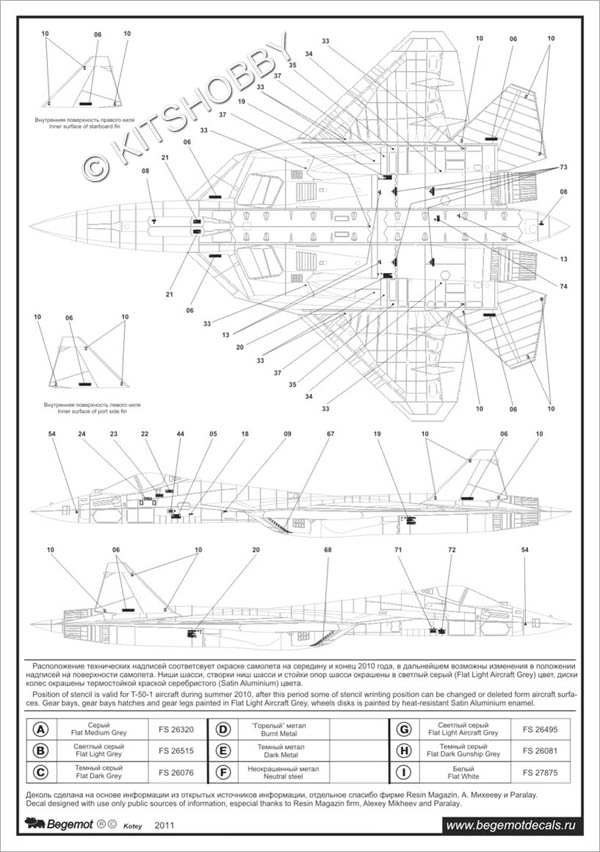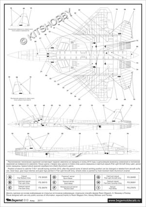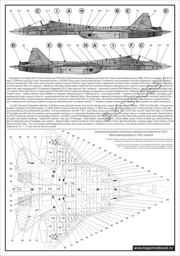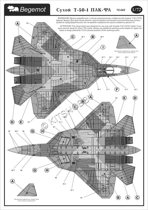 請注意: 這款水貼只適用於Zvezda 7275 T-50 PAK-FA模型, 這款水貼未必適用於其他廠商的T-50模型.