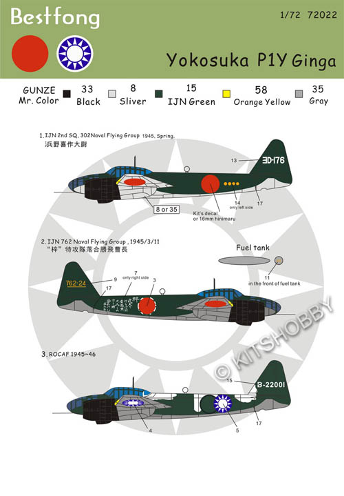 1/72 Yokosuka P1Y IJN and R.O.C. (Taiwan) AF