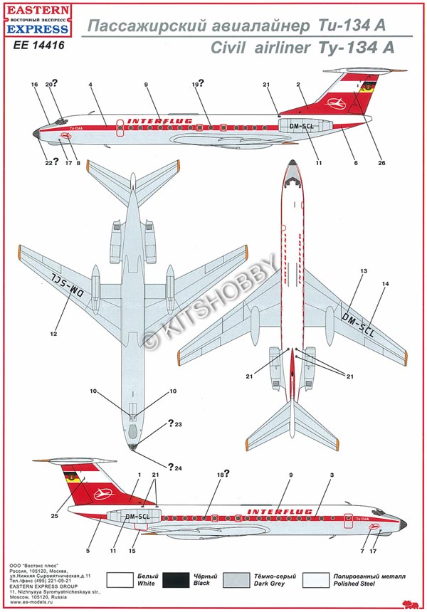 1/144 Tupolev Tu-134A East German (DDR) Interflug