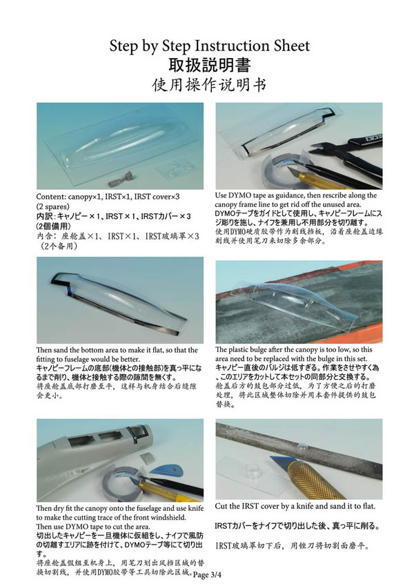 含吸塑座艙蓋一個, IRST光電探測儀一個, IRST透明罩三個, 中英日3語種彩色說明書一份
