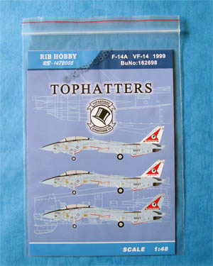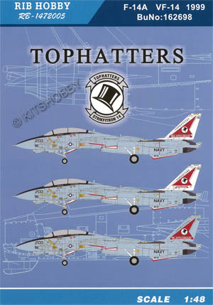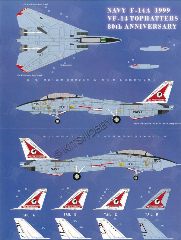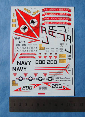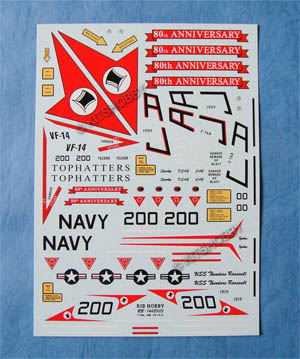 Decals provides 4 options F-14A VF-14 TOPHATTERS 80th Anniversary in 1999 markings.