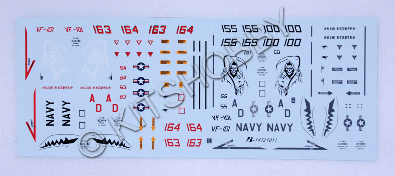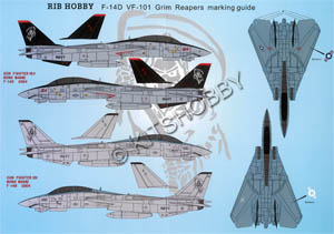 Decals provides 4 options USN VF-101 F-14D Tomcat markings.