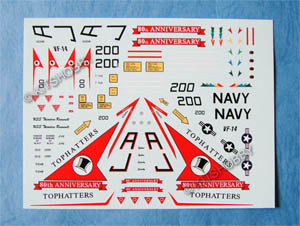 Decals provides 4 options F-14A VF-14 TOPHATTERS 80th Anniversary in 1999 markings.