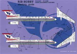 Decals provides China Southwest Livery for Tupolev Tu-154M.