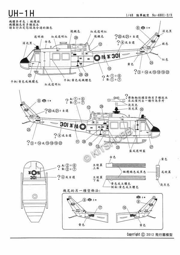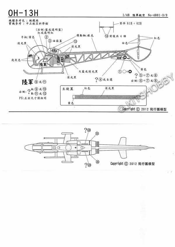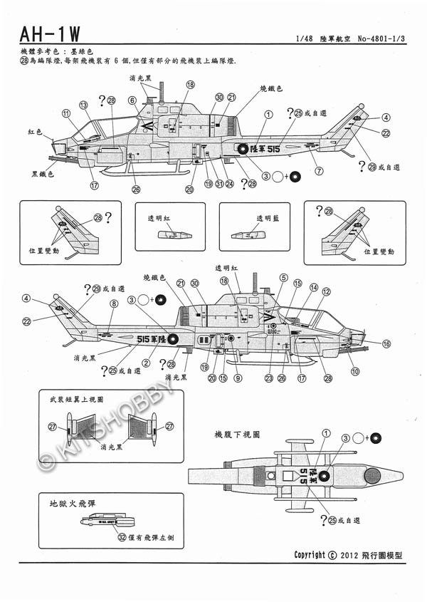 1/48 中華民國陸軍AH-1W、UH-1H、OH-13H直升機高視度塗裝