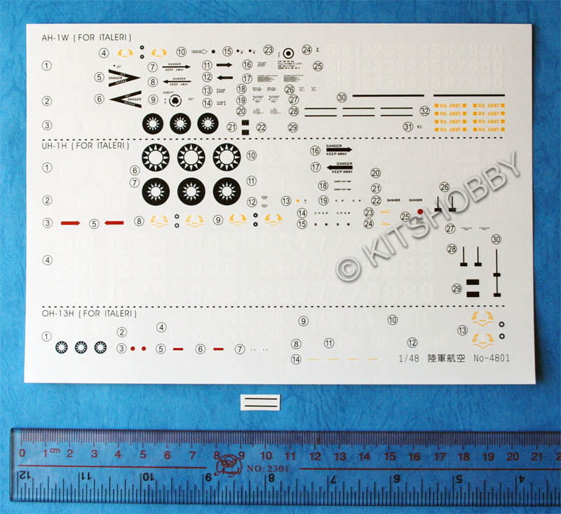 1/48 中華民國陸軍AH-1W、UH-1H、OH-13H直升機高視度塗裝 水貼